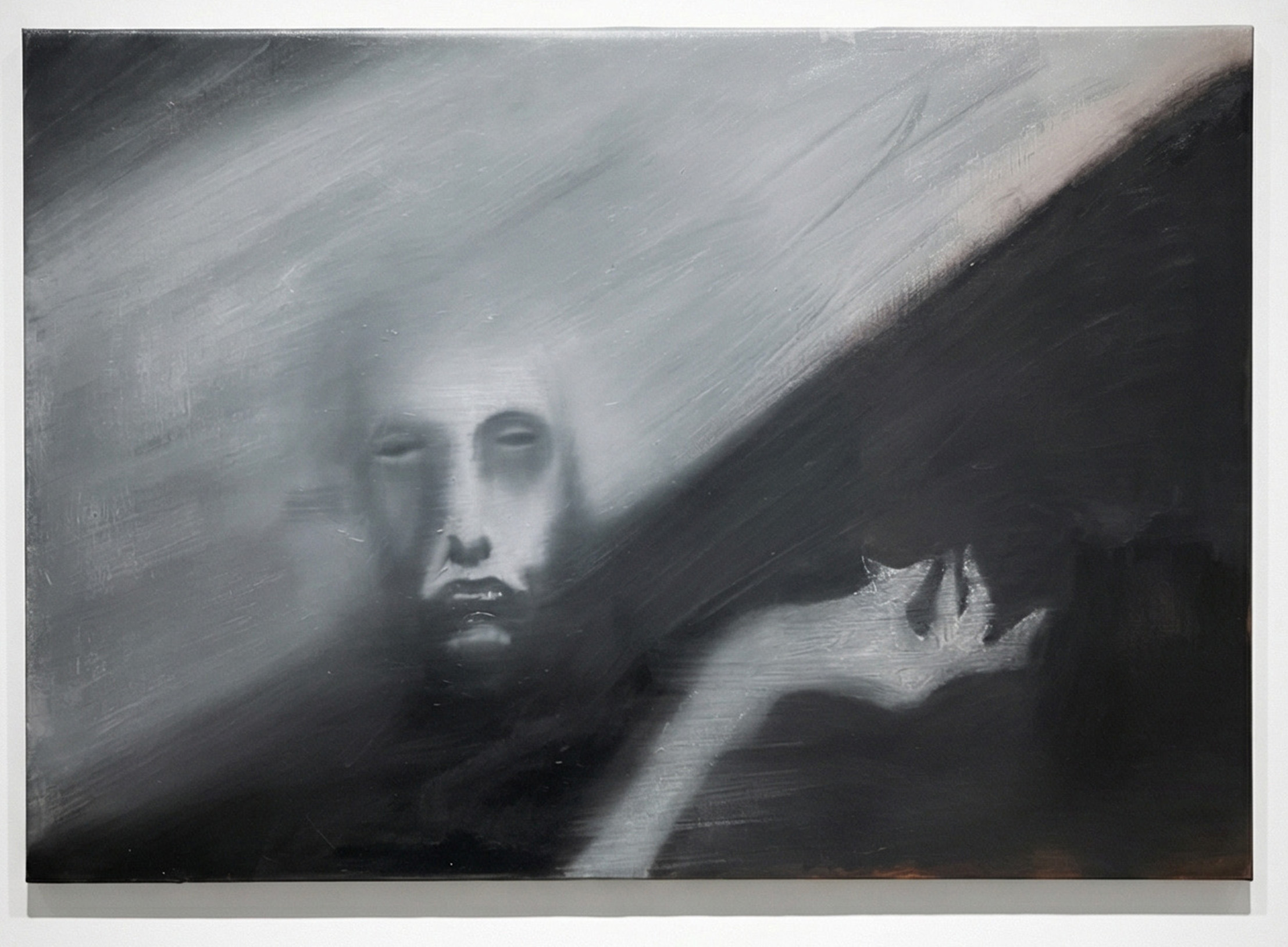 The works are built in layers, slowly. Oil on canvas or linen, sometimes panel. Colour is arrived at through mixing and erasure rather than selection. A painting is finished when it starts to resist further change.