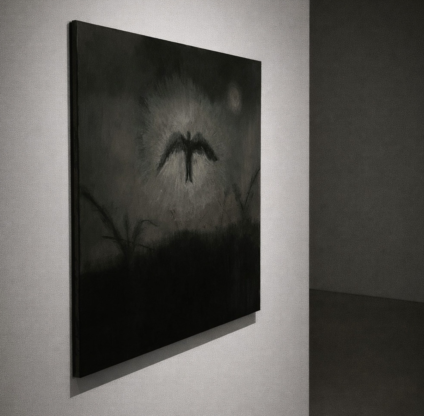 Much of the work is rooted in landscape — not as subject but as condition. The flatness of the east, the grey weight of winter light, the particular silence of fields at the edge of a town.